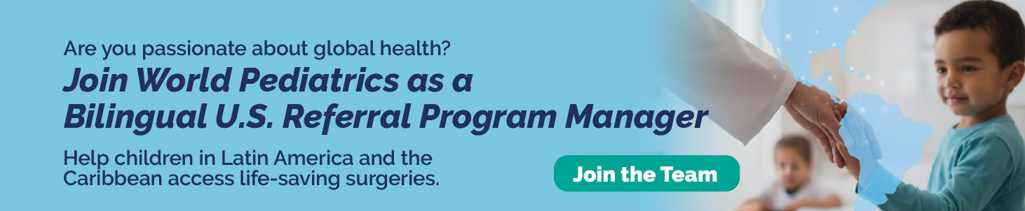 Work For Us Join Our Team World Pediatrics offers the opportunity to work in collaboration with a dynamic and passionate team that is committed to healing critically ill children and building healthcare capacity in the world. We offer a competitive salary and benefits package including health care benefits, generous paid time off and much more. Please visit us on LinkedIn for active openings. Send your application to:[email protected]